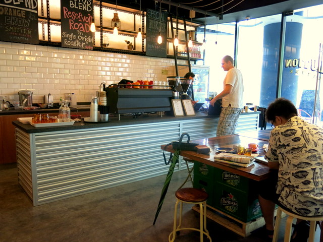 Glass-to-ceiling windows imbue this coffee joint with an open and airy feel. |